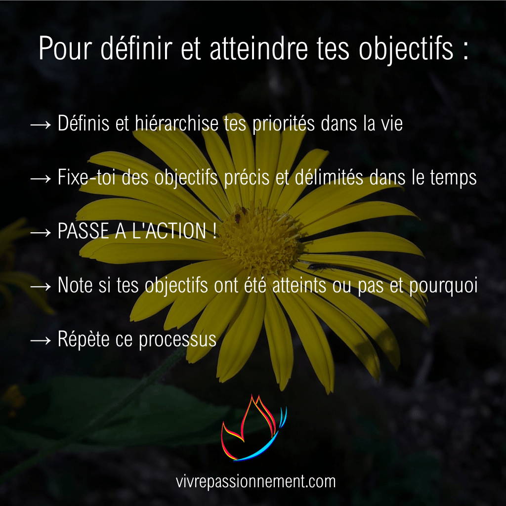 Déjà, pour savoir quels objectifs te fixer, je te propose un peu d’introspection : quelles sont tes priorités dans ta vie ? En effet, quand en développement personnel on évoque la notion d’objectif, cela fait assez souvent allusion à des objectifs de réussite financière ou professionnelle, ou encore celui de se mettre au sport pour perdre du poids et développer un corps de rêve. Mais est-ce vraiment ce qui compte pour toi, ou as-tu d’autres buts ?