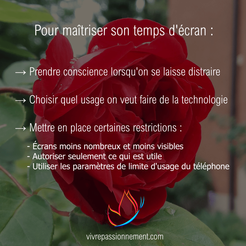Voilà, j’espère que ces conseils t’ont aidé(e). Les technologies modernes ne sont pas foncièrement bonnes ou mauvaises en elles-mêmes, tout dépend de l’usage que l’on en fait. Comme je l’ai mentionné dans un précédent article, il s’agit d’identifier nos priorités. Quand tu auras 90 ans, est-ce que tu te souviendras davantage du temps passé devant tes écrans ou du temps passé avec tes proches ? A toi de choisir. En parvenant à maîtriser ton usage de tes appareils électroniques, tu seras plus libre de gérer ton temps comme tu le souhaites et tu pourras davantage te concentrer sur les choses qui comptent le plus dans ta vie.